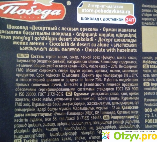 Хочу поделиться с вами впечатлениями от поедания шоколада с лесными орехами марки "Победа вкуса".