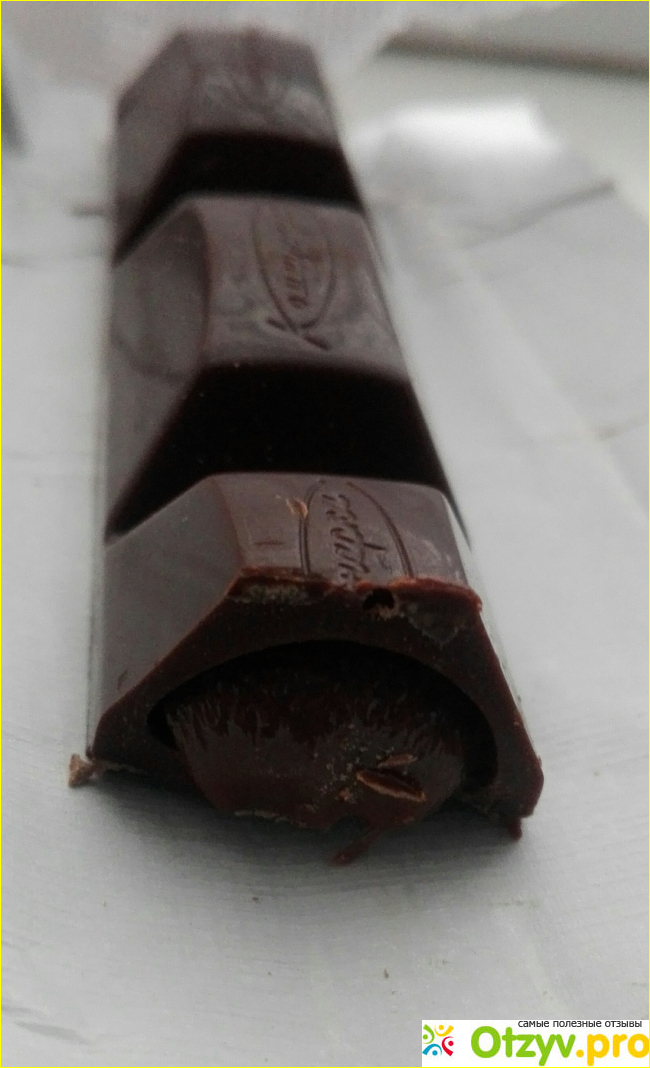 Сам батончик горького десертного шоколада "Коммунарка" с шоколадной начинкой представлен в виде 3-х долек, которые соединены небольшим переходом. Начинка базируется в самих дольках. На вид она имеет очень приятную и нежную консистенцию, на вкус сладковатая и шоколадная)). Мне очень понравилось это сочетание горькости в шоколаде и сладости в самой начинке.