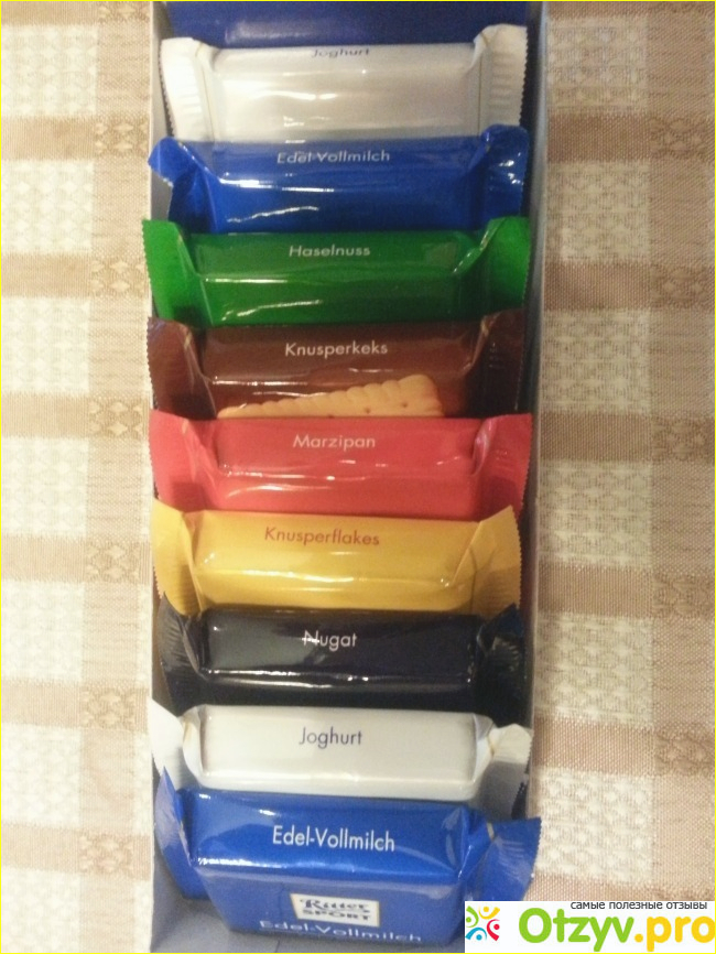Здорово, что можно попробовать столько разных вкусов из небольшой коробочки в 150 граммов! И еще такой набор приятно подавать к столу: не надо ломать, как большую плитку шоколада. А плитка не всегда ломается ровно и аккуратно. А тут красота!