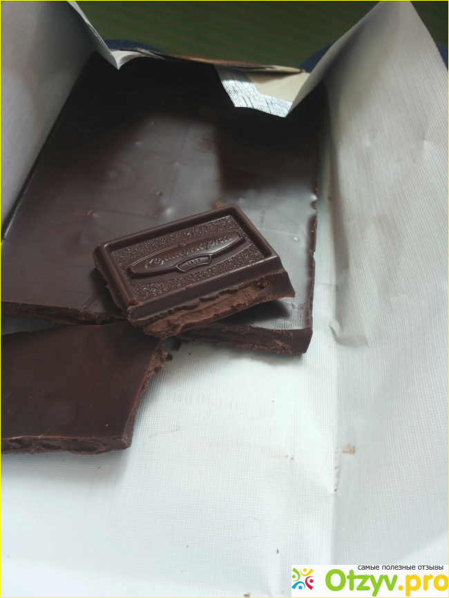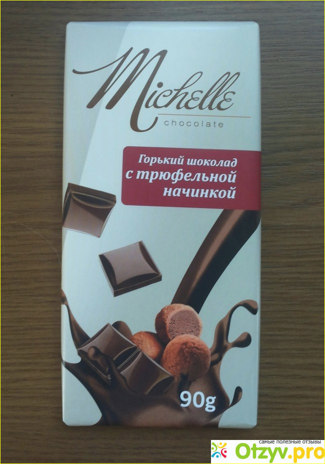 Шоколад. Вкусный, не слишком сладкий, начинка просто чудесная, она мягкая с привкусом трюфеля. В продукте не содержится ГМО. Содержание какао-продуктов не менее пятидесяти пяти процентов. Вес плитки составляет девяносто грамм. В ста граммах пятьсот сорок восемь калорий.