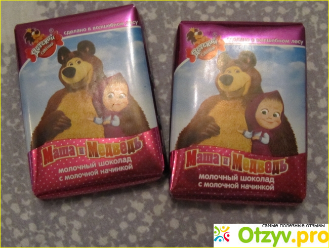 Шоколад молочный "Маша и Медведь" с молочной начинкой выпускает кондитерское объединение "Славянка" г. Старый Оскол, Белгородская обл.