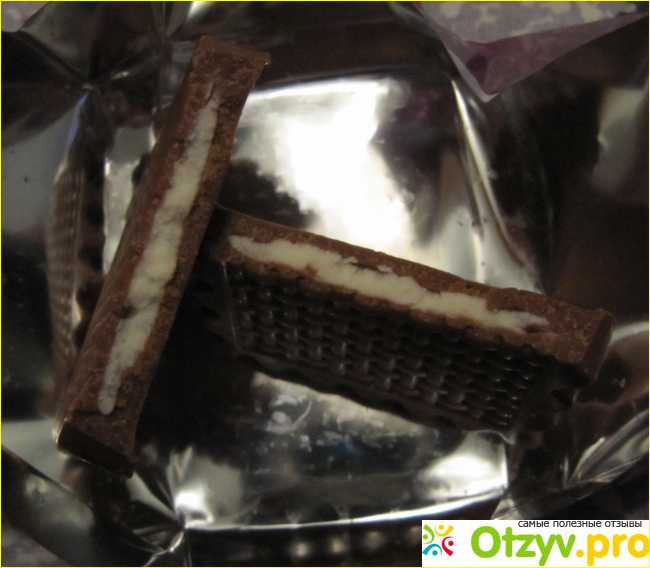 Разломив эту шоколадную "печеньку" пополам мы обнаружили молочную начинку.