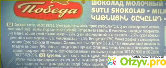Шоколад молочный "Победа вкуса" из цельного молока |