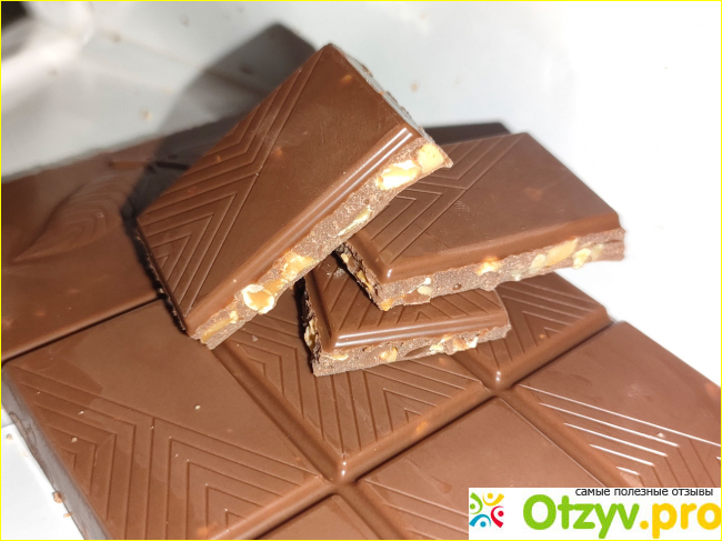 Шоколад молочный приятный, но вкус его очень теряется. Растаять во рту не успевает поскольку его жуешь из-за орехов.
