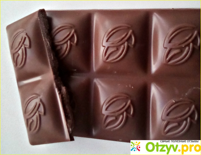 Плитка разделена на дольки, на них изображены какао-бобы, довольно мило. И есть удобно, отламывать по одной дольке. Я люблю брать шоколад в дорогу. Едешь в транспорте, смотришь на пейзаж за окном, отламываешь по дольке шоколад и жизнь кажется сладкой, правда.