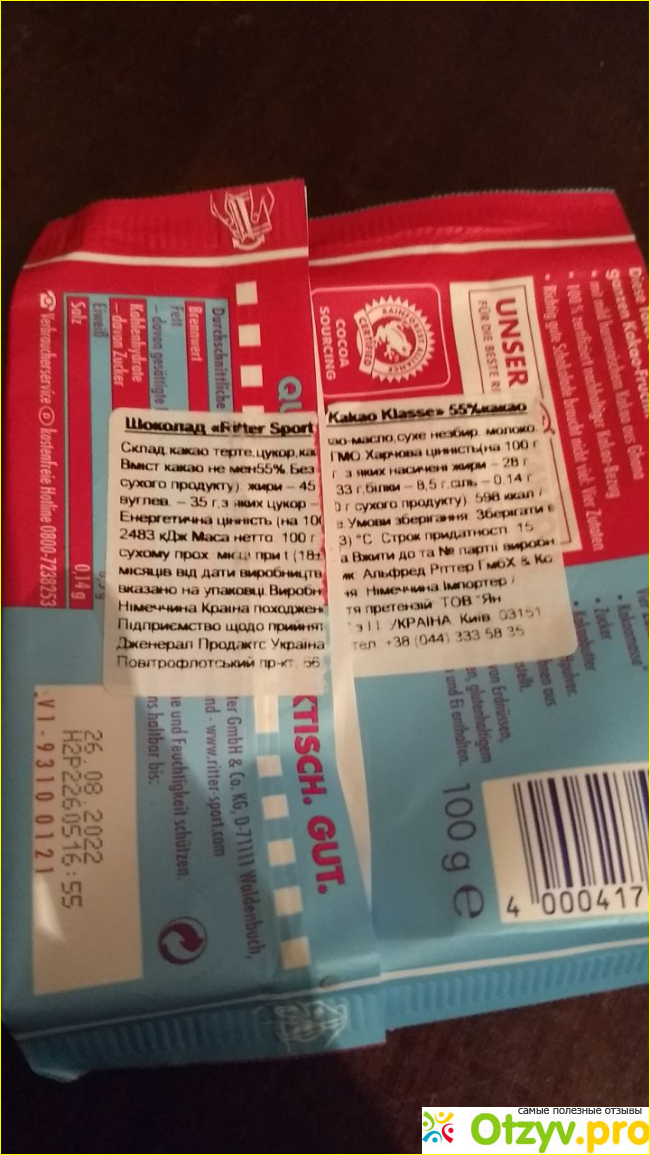 Шоколад Ritter Sport Kakao Klasse впервые поробовала неделю назад. Купила его в супермаркете "Класс" в Харькове со скидкой. Обычная его цена составляла тогда 67 гривен, что, мне кажется достаточно дорого для небольшой шоколадки весом 100 грамм, а со скидкой он стоял 44 гривны.