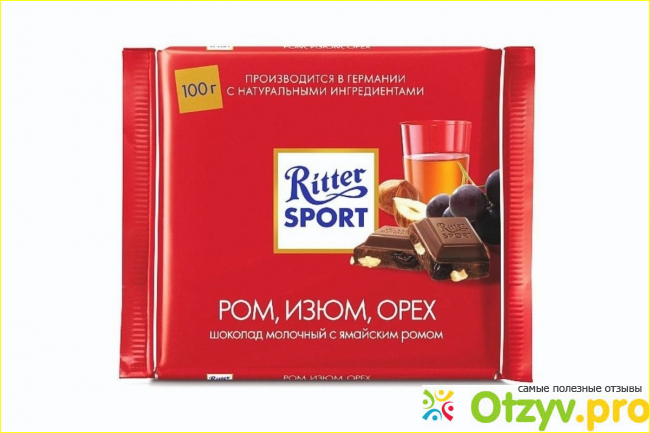 Шоколад Ritter Sport молочный с орехом, изюмом и ямайским ромом |