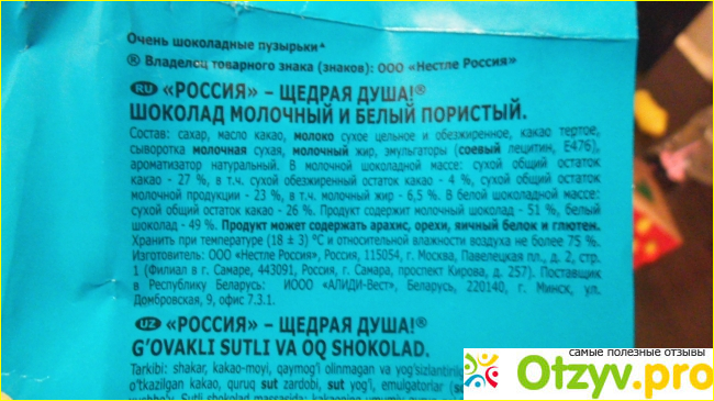 Мне больше всего нравится белый шоколад, который кажется более нежным. Приобрела поэтому последний раз "Очень шоколадные пузырки", мечтая ощутить нежность пористого шоколада.