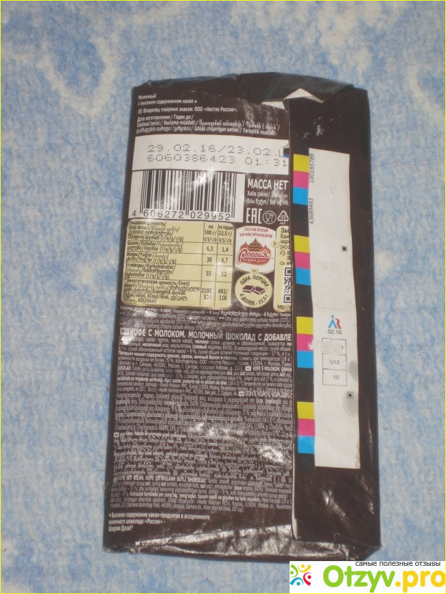 Ради того, чтобы попробовать чего-нибудь новенькое, моя рука, как азартного охотника до чего-то яркого, тянется именно к одной из таких плиток "России - щедрой души!" со вкусом кофе с молоком! Я быстро хватаю её и мчусь на кассу! В итоге, после пробы этого шоколада с кофе и молоком, на моём лице, как и на лице моей мамы, после вкушения сей лакомой крошечки, появляется довольная улыбка удовлетворённого зверя!