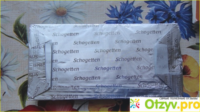 Шоколад, как я поняла, немецкой фирмы, и надписи на упаковке по-немецки, я этого языка не знаю. Судя по картинке это шоколад с начинкой, но шоколадной же, правда, с вкраплениями карамели (это слово я все же поняла). На упаковке с обратной стороны какие-то (очень мелкие!) надписи все же есть, допускаю, что и по-русски, но читать не стала, так как состав ясен и без лишних пояснений.
