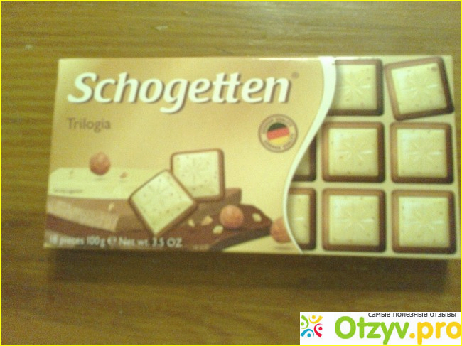 Так что Шоколад Schogetten Trilogia не настоящий, как производят в России, а всего лишь просто десерт, причём слишком приторный. Покупать можно, но особого удовольствия от вкуса шоколада ожидать не стоит. Из добавок ощущаются только мелкие кусочки грильяжа. Странно, что темная часть, то есть та, где должен быть молочный шоколад сильно не отличается по вкусу от белого. Вероятно потому, что сильная приторность губительна для правильного восприятия вкуса.