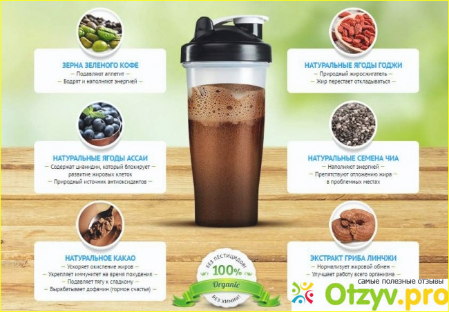 Он хорош тем, что в нем присутствует перемолотые какао-зерна, отчего совершенно не хочется сладкого, а другие входящие ингридиенты замедляют чувство аппетита.
