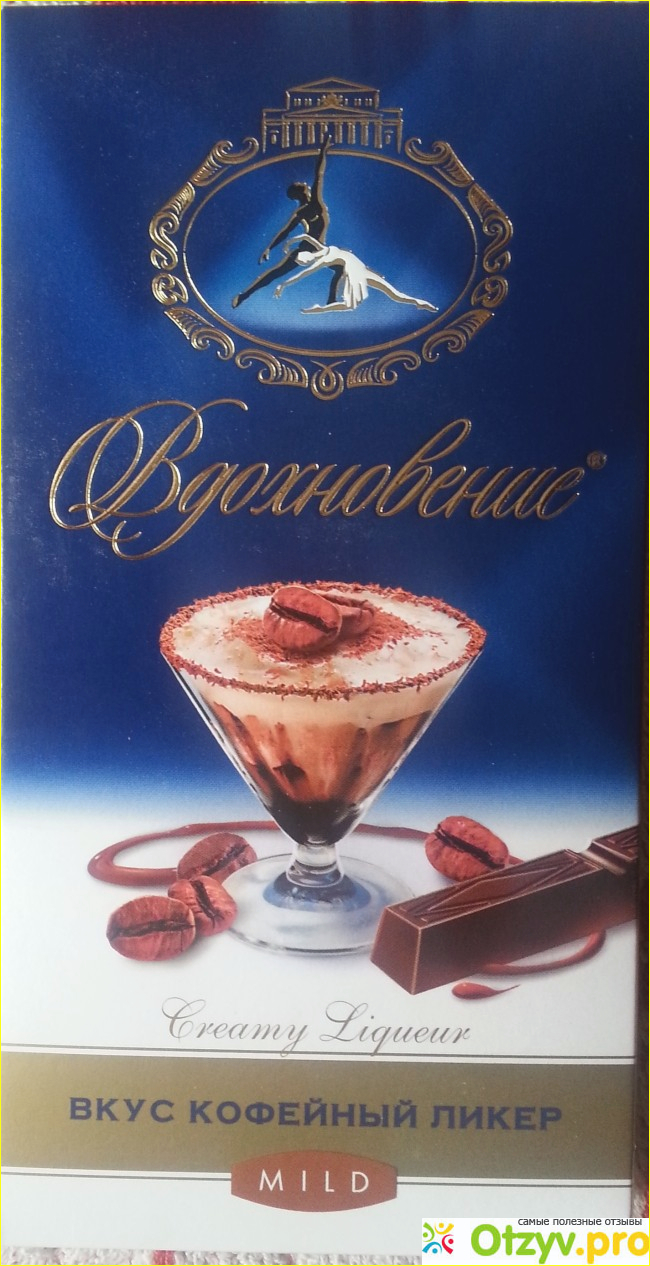 Из множества вариантов шоколада "Вдохновение" мне нравился темный шоколад с орехом. Но недавно я для себя открыла еще один потрясающе вкусный шоколад - с начинкой со вкусом кофейного ликера. Вот он и стал моим фаворитом среди семейства различных "Вдохновений".