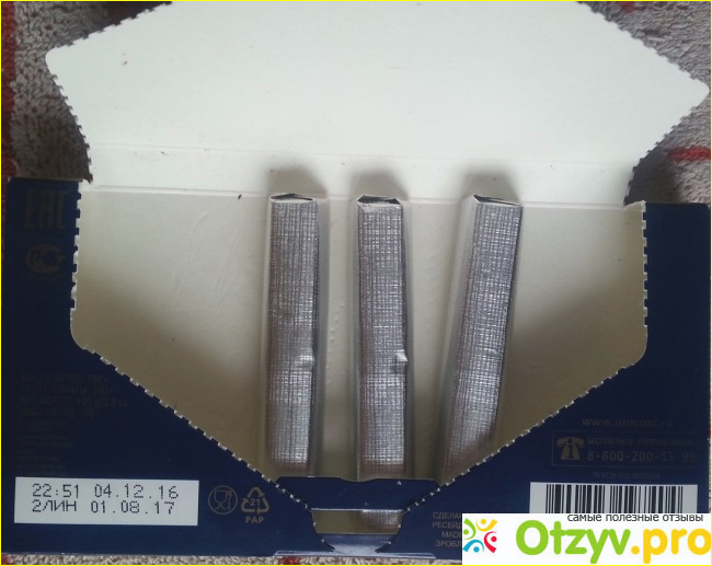 Открываем, где указано, и видим батарею вкусняшек в фольге.