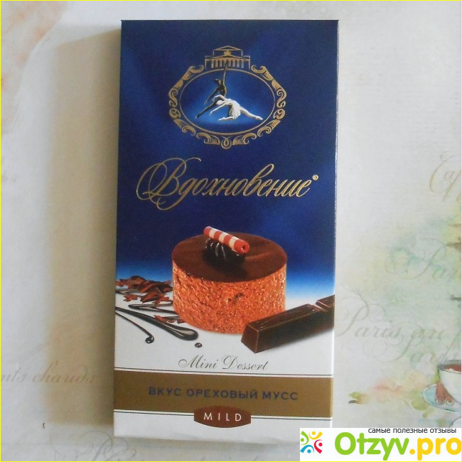 Мне нравится, что создатели шоколада Вдохновение время от времени предлагают продукцию с различными начинками. Вот, например, сегодня я увидела в продаже новинку - темный шоколад с начинкой Mini Dessert вкус ореховый мусс, и сразу же купила ее, тем более, что в супермаркете Перекрестк была хорошая скидка на эту новинку. Признаюсь, я еле удержалась оттого, чтобы попробовать шоколад с новым для меня вкусом по пути домой. Меня остановило только желание сделать сладкий сюрприз своей семье. У нас ведь дома все любят побаловаться сладким десертом, и шоколадом в том числе.