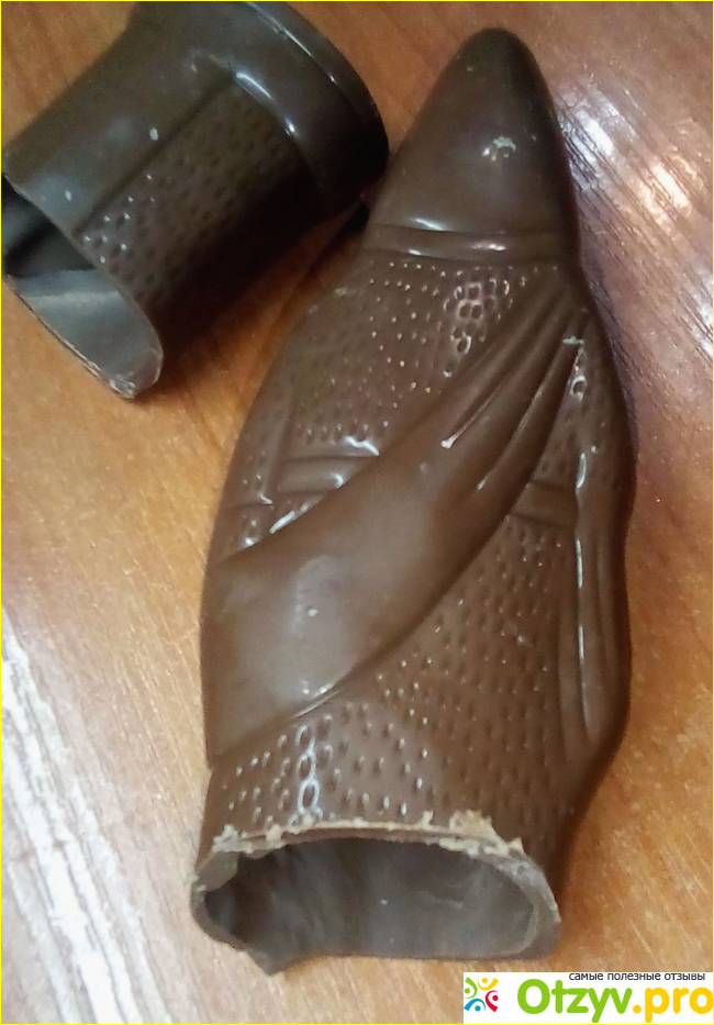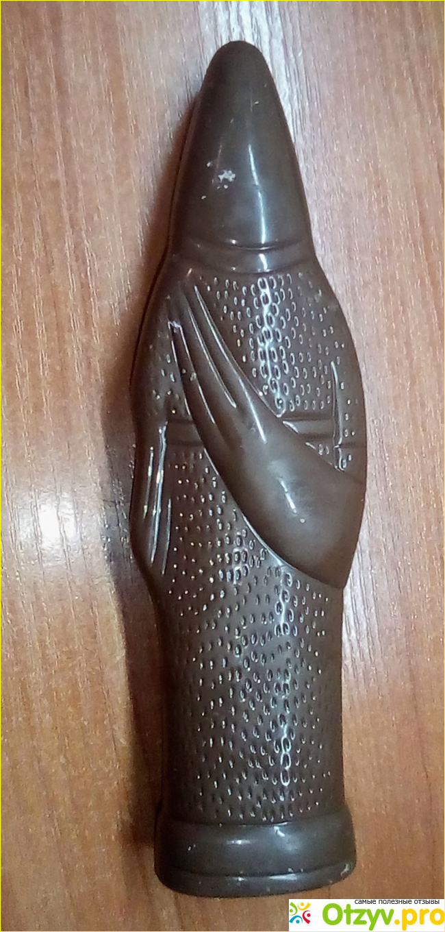 Внутри фигурка полая, шоколад толстый, прочный, не раскрошился, когда ребенок пилил его ножом.