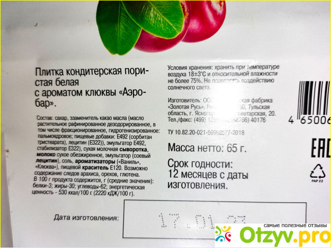 И тут мы купили шоколадную плитку "Аэробар" с клюквой, созданную под белый шоколад.
