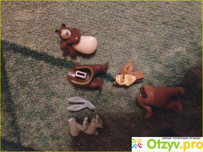 Игрушки тут хорошие, полная копия героев данного мультика, без какого-то дополнения от производителя. У нас есть практически все фигурки Маши, есть медведь и медведица, ну и остальное - панда, белка, волк. Достаточно симпатичные и крепкие игрушки.