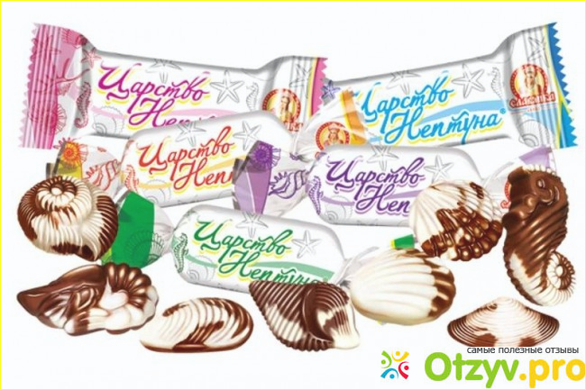 Уж каких я только конфет не пробовала, но "Славянка" удивляет. Как-то я купила несколько видов конфет этой марки, там были и выше перечисленные, а также с вот таким названием - "Царство Нептуна". Согласитесь, что название необычное, но это не просто название, в нем есть определенный подтекст, данные конфеты тоже выпускаются в форме фигурок различных морских жителей.