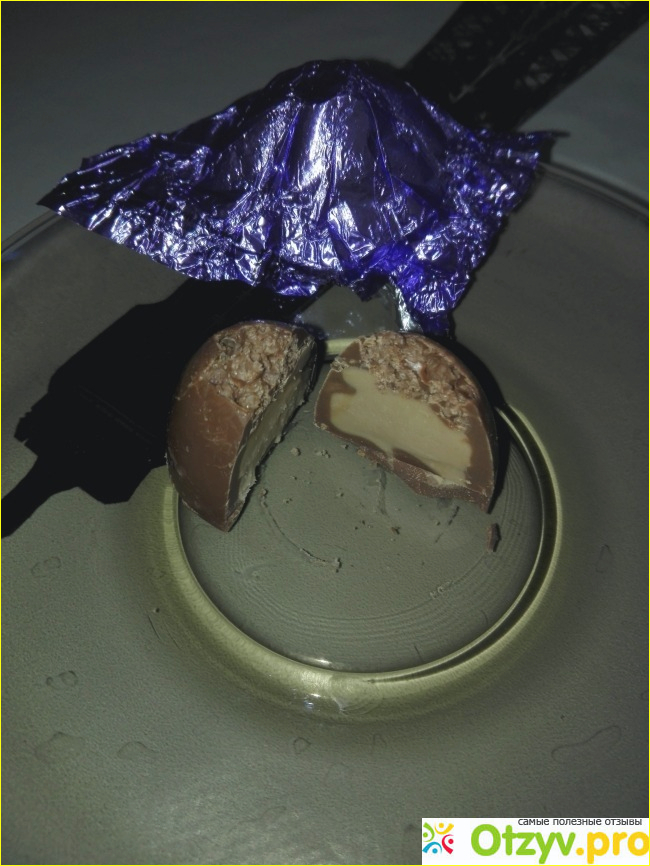Ну и помимо ореха с изюмом, под толстым шоколадным слоем еще находится сливочная начинка, очень нежная, которая имеет вкус кофе Латте.