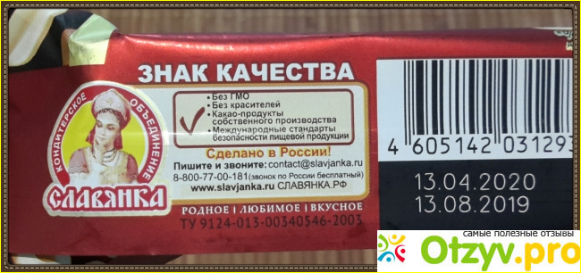 На одной из боковых сторон упаковки обозначен логотип торговой марки и есть даты изготовления и годности. Срок годности составляет около восьми месяцев.