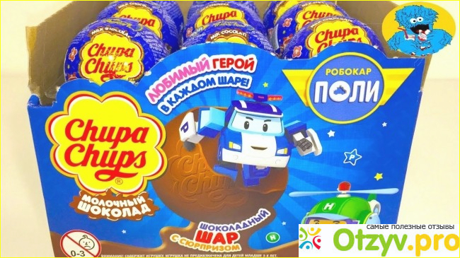 В среднем шоколадный шар Чупа-чупс "Робокар Поли" стоил на тот момент рублей пятьдесят. Выпускался он в голубом цвете, на каждом шаре были изображены герои мультфильма "Робокар Поли", ну и конечно написано было название серии, и, конечно же марка.