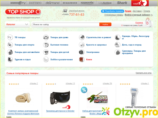 Как раз про один из таких интернет-магазинов и пойдет речь в данной статье. А называется этот сайт Топ-Шоп. Но просторах интернета магазин появился очень давно. И свою историю он еще начинает с показа и предложения различных товаров через рекламу по телевидению. Кстати и сейчас можно увидеть на специальных каналах рекламы товаров, которые продаются в этом интернет-магазине.