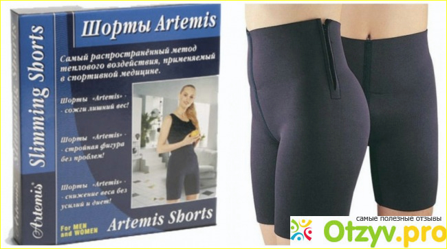 Это изделие представляет собой шорты из неопрена с добавлением лайкры, спандекса и нейлона. Материал создан таким образом, чтобы носка была не только приносящей пользу, но и приятной. На поверхность отлично выводится лишняя влага, кроме того, шорты очень хорошо возвращают свою форму после носки. Артемис помогают уменьшить проявления целлюлита, активизируют работу клеток, создают эффект сауны, сжигают калории, усиливают кровообращения. Они очень хороши при спортивных тренировках, так как дополнительно работают с проблемными поверхностями тела.