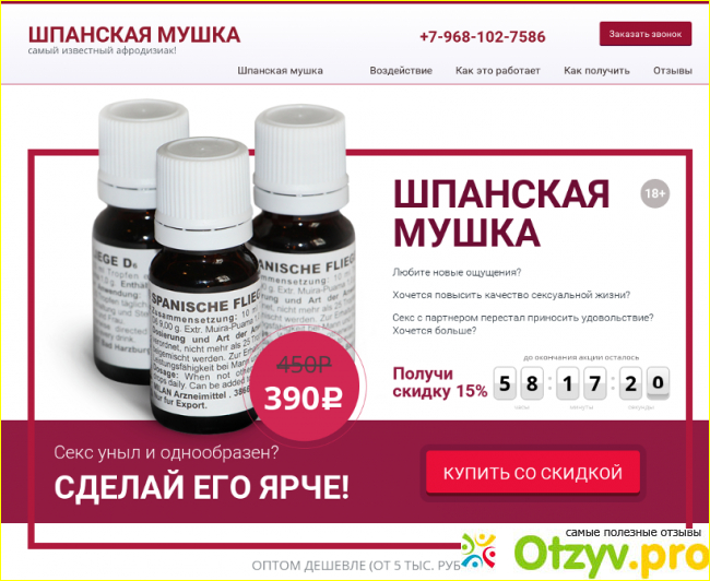 Думаю многие из нас видели в фильмах интересный момент, когда в бокал девушке подмешивают какой-то страшный порошок или капают какое-то "зелье" и потом она чуть ли не бросается на своего "возлюбленного". И думаю, что многим это казалось глупым преувеличением, ведь все знают про другие "возбудители" и те, кто пробовал, знают, что девушка вряд ли накинется на вас, а это лишь приведет ее лишь в немного большую "активность". Но шпанская мушка действует именно так, что очень вероятно, что девушка именно набросится вас.