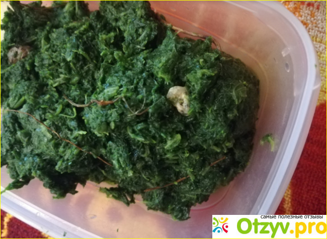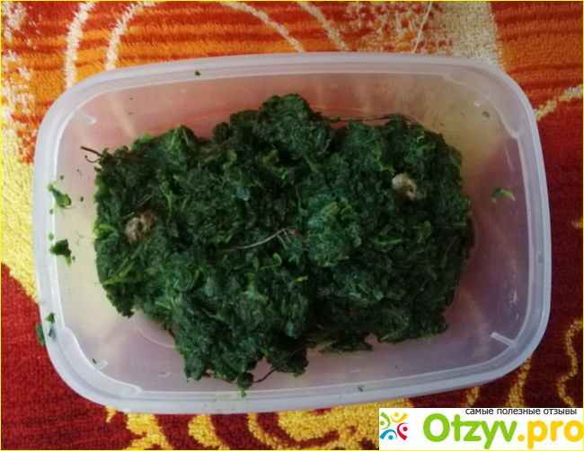 Вот только ни вкуса я ее не почувствовала, ни пользы не усвоила. Все потому, что внутри пачки оказался мокрый зеленый комок с примесью грязи. Вместо воодушевления поесть полезную, здоровую, оригинальную пищу, я в итоге получила отвращение к шпинату, наверное, на всю жизнь. Теперь мне везде будет мерещится эта каша с мусором. Не думаю, что еще решусь на покупку шпината, пусть даже другой марки.