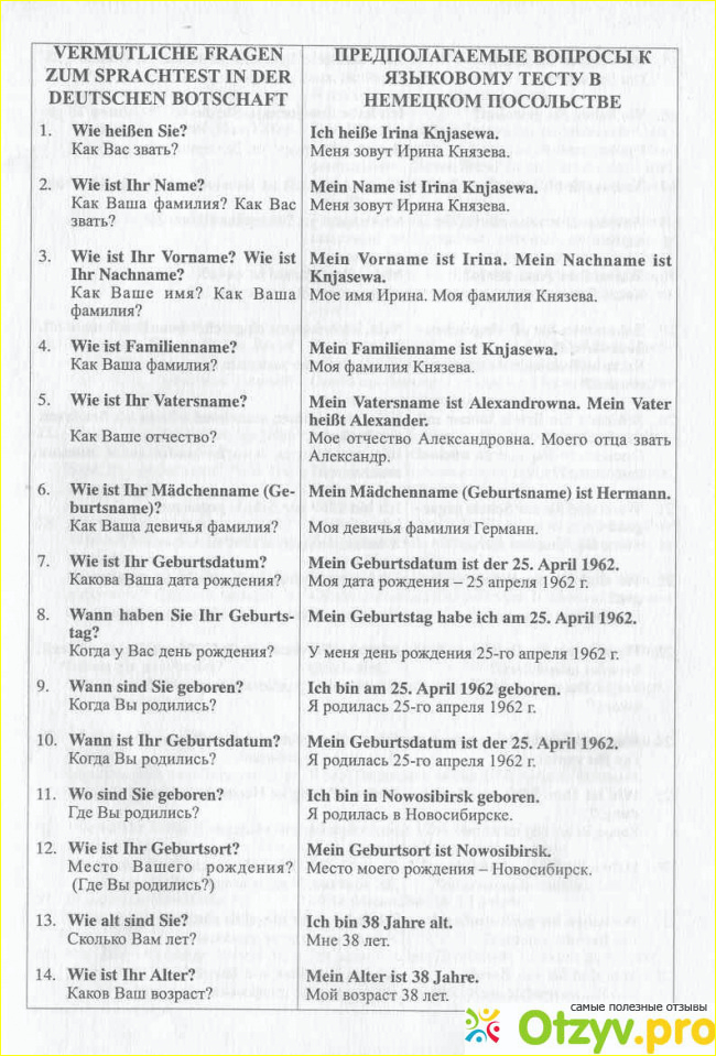 Мужу задавали на немецком такие вопросы: