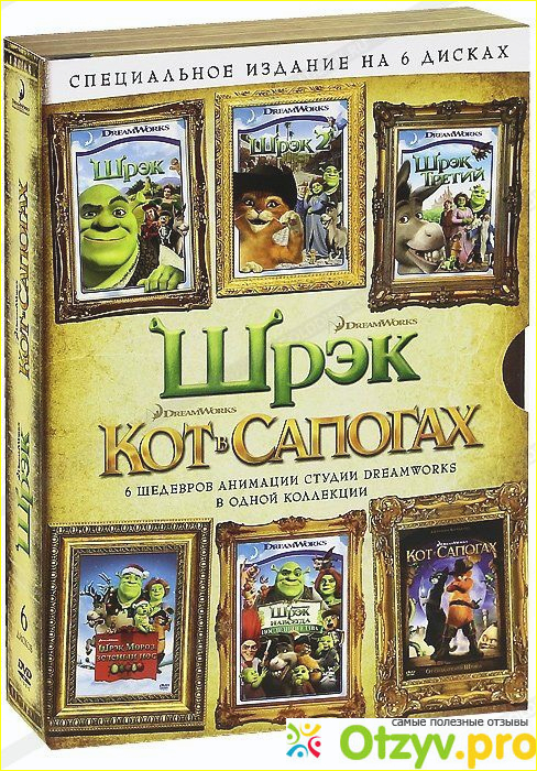 Наверное подобными способами авторы этого фильма или мультифильма заставляли зрителей полюбить персонажей и влюбиться не только в саму сказку которая как по мне очень продуманная и интересная и сюжет действительно можно назвать легендарным, а главное интересным и живым, но еще и обстановка. А вообще самые большие молодцы конечно не только те кто озвучивал персонажей, но и те кто нарисовал это волшебный дивный мир в котором вроде как и была и царила какая то дисгармония но это так все по детски по доброму передавалось, что весь фильм можно смотреть с улыбкой на лице и ничего плохого даже в голову не полезет. Не знаю как по мне современные мультики даже с этим же Шреком рядом не стояли, те же идиотские миньены и прочее просто десткий сад по сравнению с харизмой основных персонажей этого фильма, кстати на этом ДВД сборнике не только сам Шрек но еще отдельная ветка про Кота в сапогах, это сделал ответлвение от основного фильма, чтобы зрители узнали про жизнь того самого забавного кота который все время порол чушь и прыгал и кидался на всех кому не лень, собственно все это можно купить в этом сборнике, но чем он мне еще понравился так тем, что там есть крутое качество звука и если у вас домашний кинтоеатр, вы мягко говоря будете потрясены качеством записи