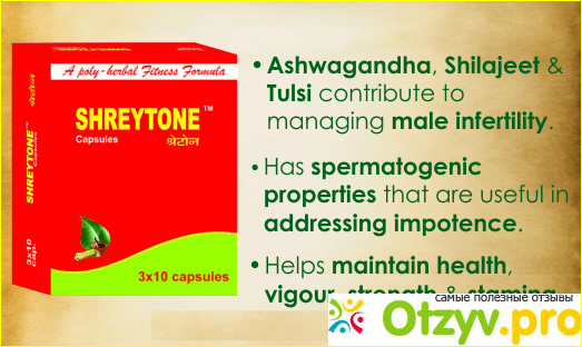 Капсулы "Шрейтон" 100% растительного происхождения в составе которых витания сомнифера, аспарагус рейсмосус, мускус пруриенс, асфальтум, т. е это сбор трав которые произрастают в Индии, и он не имеет ни каких побочных явлений.