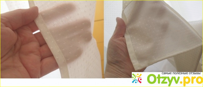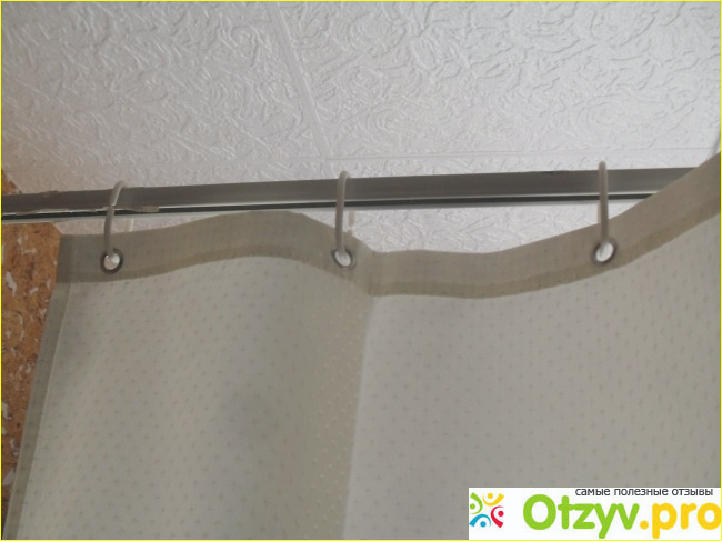 Чего только из полиэстера не шьют. Эту ткань можно стирать и даже гладить. Не скажу, что занавеска дешевая. Как раз нет. Самые дешевые из клеенки. А эта в 4 раза дороже. А главное, что она уже полностью готова к подвешиванию, имеет для этого колечки. Очень аккуратно сшита и подрублена. Смотрится даже нарядно. Похожа на шелк, только плотнее.