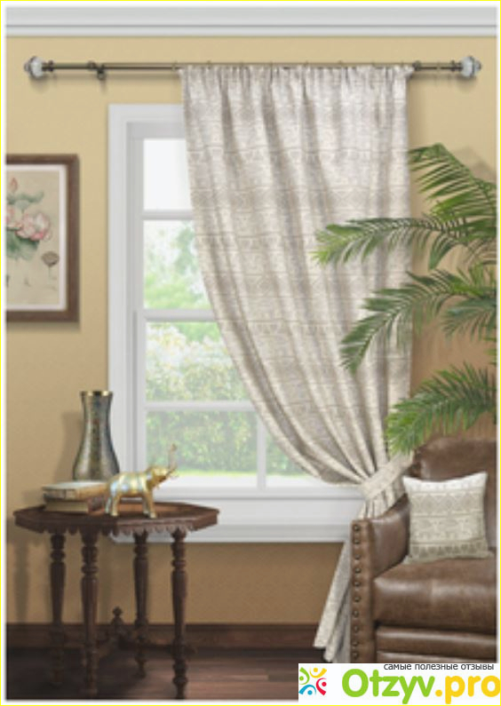 Шторы имеют преимущества еще и в материале изготовления. Поскольку изготовлено изделие их ткани высокого качества - жаккард, при этом еще и украшена интересным орнаментом, от имеет индийский стиль. Такой материал обладает отличными свойствами и особенно хорош для пошива штор, так как имеет особую плотность, износостойкость, а также эти шторы практически не мнутся, что имеет важное значение.