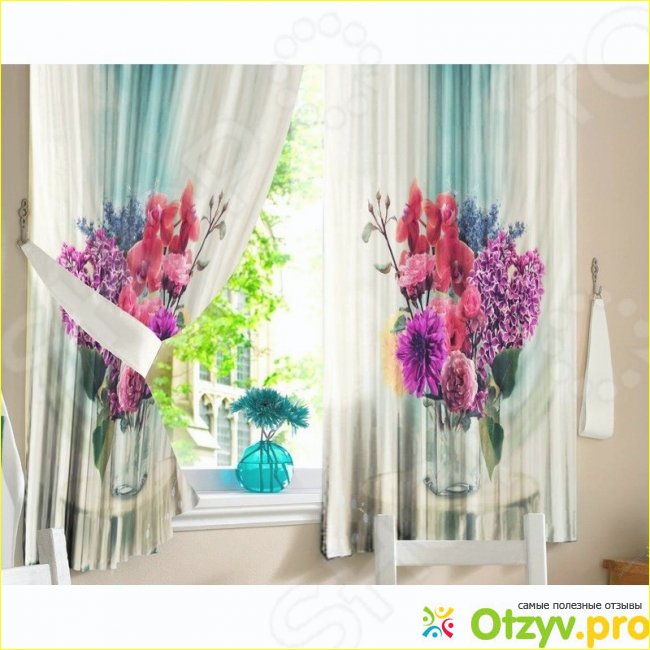 Вы сами убедитесь в том, что такой яркий принт идеально смотрится как при дневном свете, так и при включенном искусственном освещении вечером и ночью. Краски яркие, рисунок хорошо и четко прорисован, а если вы хотите дополнить цветочную композицию, то, наверняка, вас заинтересуют и другие элементы серии "Букет цветов". В данной серии представлена тюль.