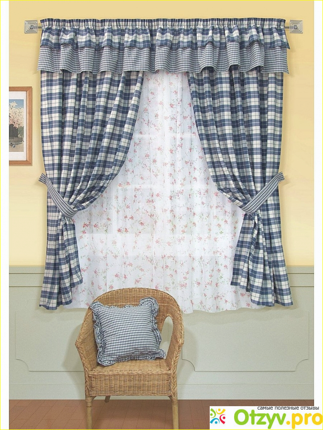 Рисунок в клеточку будет дорог тем, у кого подобные шторы висели дома или в деревенском дачном домике бабушки. А волнистый ламбрекен дополняет умильность общей композиции.