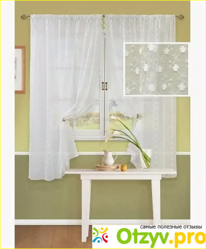 Первое, что я отметила повесив на гардину эту штору, так похожую на тюль — изделие смотрится действительно ярко-белым. Нет желтизны, синевы или каких-либо других оттенков. Выглядит свежо и моя комната (давно не ремонтированная) также стала смотреться чистенько и словно только что после ремонта.