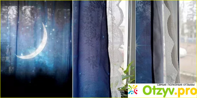 Шторы, купленные в спальню, оказались более тёмными и изображали картины звёздного неба, поэтому получилось более выраженно.