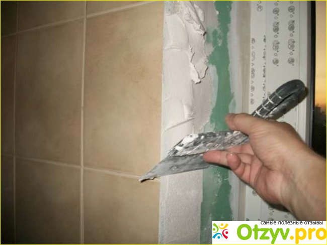 *Следующее что хочу отметить, так это то, что материал сам по себе подходит не только для выравнивания стен и затирания дыр в стенах, он отлично подходит для формирования углов. Для этого необходимо соблюдать всего лишь несколько правил: гипсовую штукатурку наносить небольшими порциями в несколько этапов (1-2 слоя) и формировать скол на углу (откосе). Из-за поэтапного нанесения слои высыхают быстрее и получаются прочнее (в дальнейшем не отваливаются).