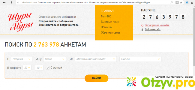 В настоящий момент я женатый человек, даже и в голове у меня нет посетить сайт знакомств и заводить какие-то переписки, все мне это не нужно, я люблю свою супругу и мы с ней очень счастливые люди, что каждый из нас в свое время отошел от виртуальных знакомств, хотя мы с ней познакомились в социальной сети в контакте. Раньше я был зарегистрирован на проекте Фотострана, вот из всех сайтов знакомств - это бесспорно лучший вариант. Ну а теперь давайте поближе познакомимся с сайтом знакомств Шуры Муры.