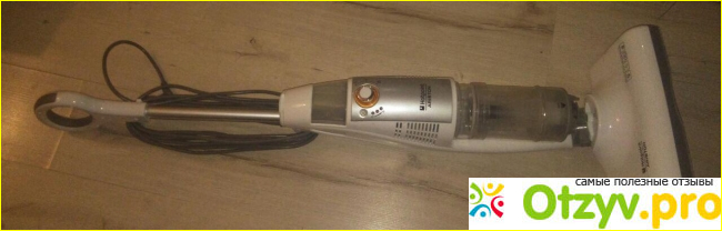 Вот так выглядит пылесос-швабра производства Аристон, на фото вверху он просто лежит на полу и позирует на камеру. Специально выбрали данную модель, потому что она была самой выгодной по цене среди аналогичных товаров и имела функцию влажной уборки.