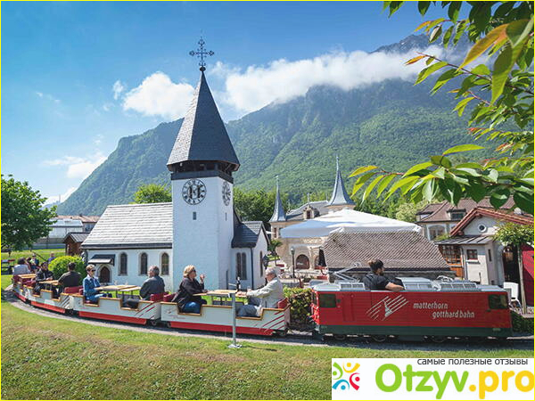 Парк, площадью 18 000 квадратных метров, включает в себя множество швейцарских достопримечательностей и исторических сооружений: мосты, виадуки, туннели, четыре железнодорожных вокзала.