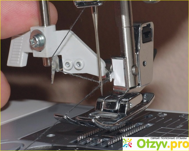 Кроме этих операций, хочу отметить возможность работать с прямой и зигзагообразной строчкой. Кроме этого, манишка может выполнять специальную строчку зигзаг. Такая строчка выполняется в три прокола и предназначена для пришивания резиновой тесьмы. Мне нравиться, что на этой машинке можно также делать полуавтоматическую петлю. Такую петлю делать несложно, требуется выполнить всего 4 приема и петля готова. Руками на это уйдет значительно больше времени, да и вид не всегда будет такой же аккуратный, как на машинке. Иногда на машинке шьет мам. Зрение у нее не совсем хорошее, поэтому она с удовольствием пользуется нитевдевателем, который есть в комплекте. Такое маленькое приспособление существенно облегчает вдевание нитки. Для людей со слабым зрением просто находка. Конечно, такое приспособление можно купить и самому в любом специализированном магазине, но приятно, что производитель подумал об этом сам.