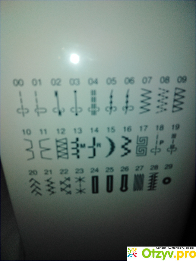 На дисплее высвечиваются номера программ. Можно выставлять длину стежка, высоту зигзага. Все эти данные отображаются на дисплее. При выборе программ также высвечиваются названия лапок, которые нужно использовать для этой строчки. На самих прилагающихся лапках выбиты названия, так что не запутаешься. Всё удобно и понятно. Можно не читать инструкцию, сам обо всём догадаешься. Очень проста в обращении.