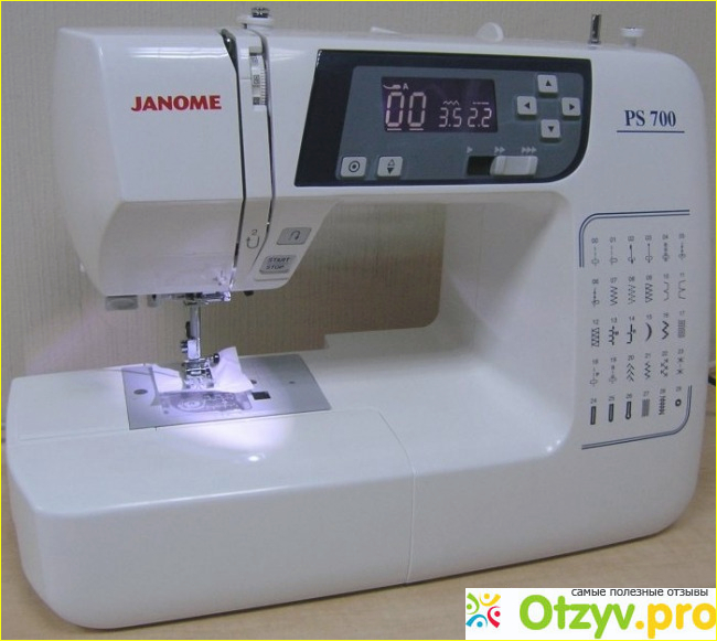 Посоветовавшись со своими подругами, моя остановила свой выбор на швейной машине Janome PS-700. Машина достаточна легка в управлении, супруга для пуска работы обычно использует кнопку старт и регулятором скорости, хотя при желании или кому если это удобно можно использовать и педаль.