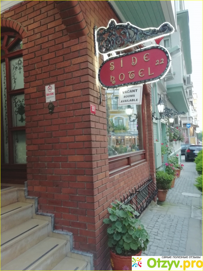 Отель Side расположен очень удачно. Он находится буквально в двух минутах пешком от Собора Святой Софии, рядом с ней через дорогу знаменитая Цистерна Базилика, а чуть правее даорец Топкапы. Если пойти в противоположную сторону, оказываемся у знаменитой Голубой мечети.