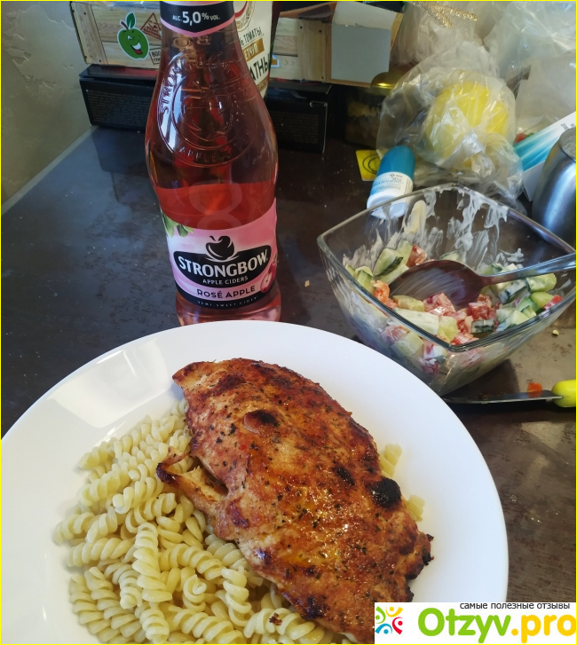 Итак, полусладкий газированный сидр "Strongbow Rose Apple". Первое, что бросилось в глаза после розового цвета напитка, это емкость бутылки. Жадность производителя позволила уменьшить объем до 0.4 литра, а это меньше на 20% напитка и больше на четверть прибыли у производителя. Надеюсь ему уже готовят отдельный котел. Крепость напитка составляет 5.0%. Не критично, с такой емкости особо не ударит в голову. Состав? Надеюсь, что он соответствует описанию на этикетках, а не хуже. Пробуем...