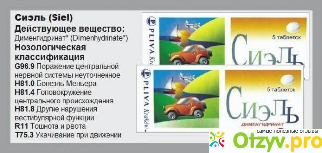 Сиэль является противорвотным лекарственным препаратом. В основе его лежит действие дименгидрината, противорвотного вещества, для которого свойственно также определенное антигистаминное и седативное действие. Сиэль угнетает нервную систему и в конечном итоге ведет к понижению холинблокирующего последствия вестибулярного стимулирования.