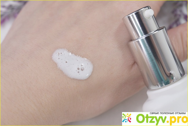 Сама сыворотка находится в тюбике, который очень удобен в использовании. Он имеет и дозатор. Дозатор дает то, что дозирует определенное оптимальное количество сыворотки для того, чтобы нанести его. Так что не выдавливается очень много средства, что потом его просто некуда девать, а можно просто надозировать столько, сколько необходимо для нанесения.